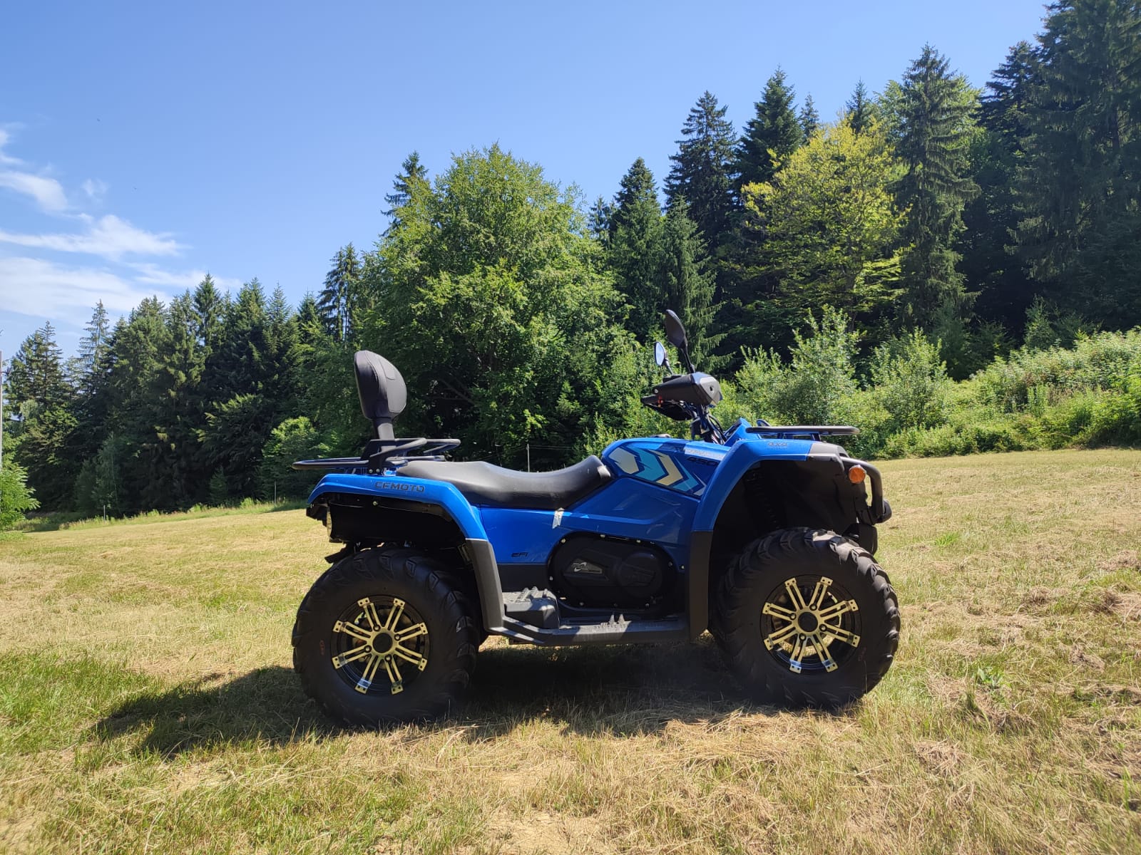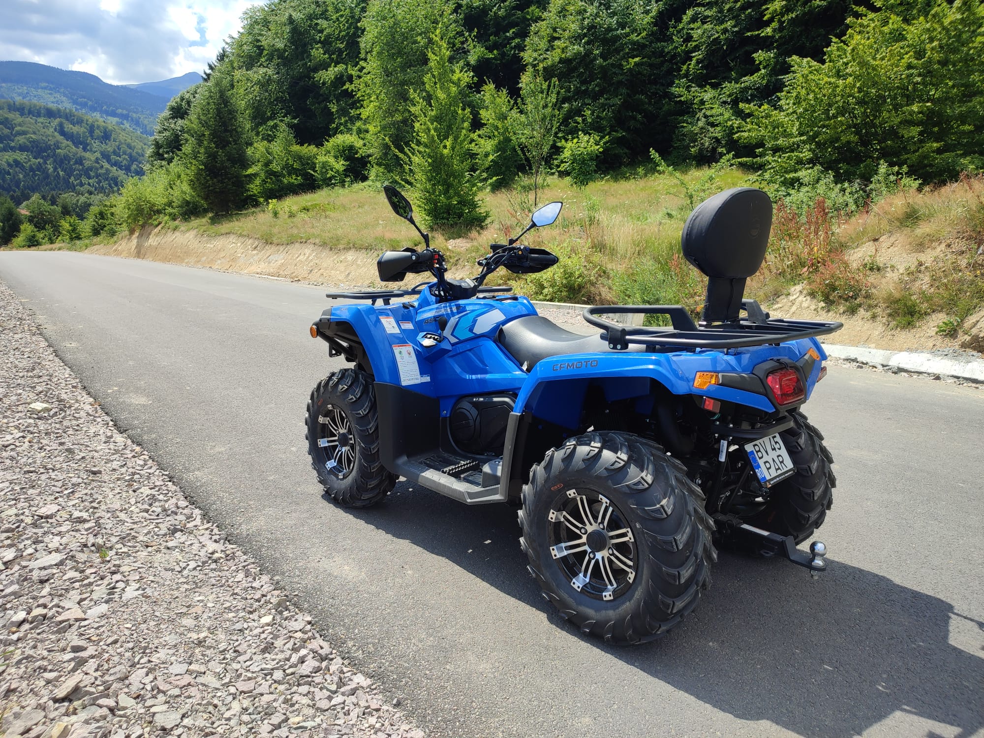 CFMOTO CForce 450L este cel mai accesibil ATV cu 2 locuri din line-up-ul CFMOTO, marca recunoscuta la nivel international pentru produsele sale foarte performante. Modelul este foarte usor de pilotat si manevrat multumita sistemului de transmisie automata CVT cu tractiune selectabila 2WD/4WD si prin echiparea cu suspensii independente cu brate duble, optimizate pentru off road. Performantele notabile de care acest ATV 4×4 este capabil sunt facilitate de motorul compact si eficient de 400cc 32cp, cu 1 cilindru in 4 timpi, iar puterea este complementata excelent de designul modern